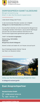 Am Donnerstag, dem 10. Oktober 2024 fällt der Startschuss für die Dorfmoderation in St. Aldegund