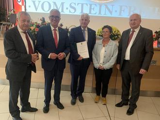 Der rheinland-pfälzische Innenminister Roger Lewentz hat Ende September 50 rheinland-pfälzische Bürgerinnen und Bürger für ihr langjähriges ehrenamtliches kommunalpolitisches Engagement mit der Freiherr-vom-Stein-Plakette ausgezeichnet.