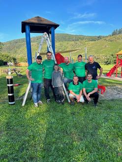 Renovierung der Rutsche auf dem Spielplatz Pünderich - Mitarbeiterinitiative „Westenergie aktiv vor Ort“ fördert ehrenamtliches Engagement