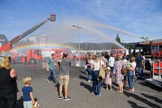 Auf dem Festgelände konnten Einsatzfahrzeuge der Feuerwehren aus der Region, des technischen Hilfswerks und der Flughafenfeuerwehr Büchel besichtigt werden - eine Ausstellung, die nicht nur Technikbegeisterte beeindruckte.