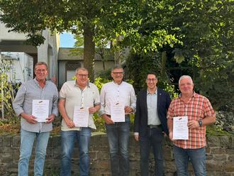 v.l.n.r.: Bernd Klemm, Franz Josef Zirwes, Ortsbürgermeister Winfried Theisen, Bürgermeister Jürgen Hoffmann, Frank Sabel