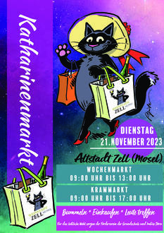 Auf den Katharinenmarkt freuen sich nicht nur die Bewohner von Zell (Mosel). Viele Besucher aus der Region kommen immer wieder gerne zum beliebten Zeller Kram- und Wochenmarkt.