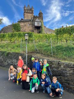 An einem anderen Tag fuhren wir mit der Bahn nach Cochem, marschierten zur Burg und nahmen diese bei einer kind- gerechten Führung genauer unter die Lupe. Im Anschluss unternahmen wir eine Rundfahrt auf der Mosel. Wieder an Land gönnten wir uns noch ein Eis und traten den Rückweg zum Bahnhof an und fuhren nach Bullay, wo die Eltern uns schon erwarteten. Es war ein sehr erlebnisreicher und interessanter Tag!