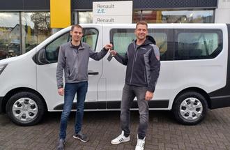 Alexander Weber, Autohaus Schäfer in Nohn, übergibt VG-Hausmeister Michael Hontheim den Vereinsbus (v.l.)