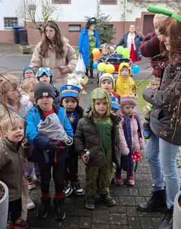 Verkleidet in bunten Kostümen zogen sie gemeinsam mit ihren Erziehern von Tür zu Tür, sagten den traditionellen Spruch auf und wurden dafür mit Süßigkeiten belohnt.