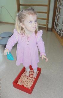 Das Projekt mit dem Thema „Hände und Füße gehen auf Entdeckungsreise“ umfasste unter anderem eine Wahrnehmungs-Turnstunde, in der das Physiotherapeuten-Team Fr. Welling und Fr. Schüssler mit den Kindern und Frau Böhnke haptische Erfahrungen mit verschiedenen Materialien in der Turnhalle der Kita sammeln konnte.