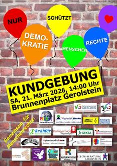 Unter dem Motto „Nur Demokratie schützt Menschenrechte“ findet am 21. März 2026 um 14 Uhr in Gerolstein eine Kundgebung statt. Die Initiative soll ein Zeichen für Menschenrechte, Vielfalt und ein respektvolles Miteinander in der Vulkaneifel setzen. Im Zentrum des Aufrufs steht die Botschaft „Die Vulkaneifel bleibt bunt“. Die Veranstalterinnen und Veranstalter betonen: „Unterschiedliche Meinungen gehörten zur Demokratie. Was nicht akzeptiert werden kann, sind Angriffe auf die Würde des Menschen und die Grundlagen des Grundgesetzes.“ Initiiert wird der Aufruf vom Forum Eine Welt e.V., unterstützt von lokalen Institutionen, Religionsgemeinschaften, Vereinen und Betrieben sowie der Verbandsgemeinde Gerolstein. Gemeinsam laden sie alle Bürgerinnen und Bürger ein, die Demokratie, Rechtsstaatlichkeit und Menschenrechte als Fundament des Zusammenlebens zu schützen. Die Veranstalter rufen die Bevölkerung der Region auf: „Setzen wir gemeinsam ein starkes, friedliches Zeichen für Menschlichkeit und Zusammenhalt.“
