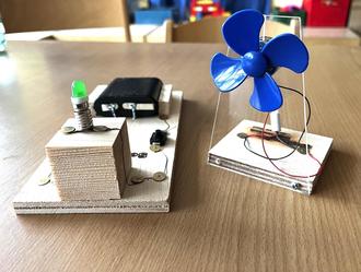 Ein weiteres Highlight für die Kinder waren die von Herrn Schmitz mitgebrachten Bausätze. Hier konnten die Kinder zwischen einem kleinen Windrad, das eine Lampe zum Leuchten bringen konnte, und einem Schaltkreis mit Batterie und Lampe wählen.