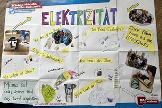 Des Weiteren konnten die Kinder draußen bei Sonnenschein beobachten, wie die Kraft der Sonne durch ein Solarpanel eine Glühbirne zum Leuchten brachte.