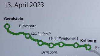 Seit vergangenen Montag, 17. April, ist die Zugstrecke Kyllburg - Gerolstein wieder in Betrieb. Damit ist das 24 Kilometer lange Teilstück der durch die Flutkatastrophe zerstörten Eifelstrecke wieder an die Schiene angebunden.