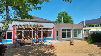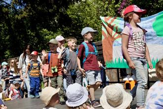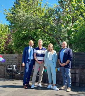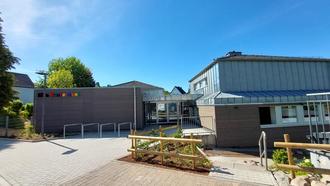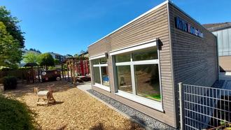 Bürgermeister Hans Peter Böffgen, Kita-Leiterin Steffi Götten, Hans Walter Blankenheim, Beigeordneter der Stadt Hillesheim und Hans-Jakob Meyer, Ortsbürgermeister von Oberbettingen (v.l.)