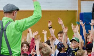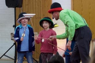 Als Abrundung des Tages besuchte Herr Kirstgen vom „Zirkustheater StandART“ die Kinder. Neben seiner Show, die Kinder und Eltern begeisterte, durften sich hinterher alle Anwesenden bei seiner Mit-Mach-Bewegungseinheit ein wenig ausprobieren: Einradfahren, Balancieren, Wippen, Ballspiele u. v. m.