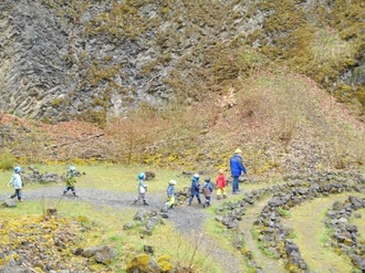 Gut vorbereitet und ausgerüstet ging es zu Fuß hinein in den Vulkan. Was gibt es spannenderes als einmal, unter fachkundiger und kindgerechter Anleitung einen Vulkankrater zu erkunden.