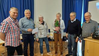 Gegenseitiger Dank: Hans-Jürgen Weiler vom Seniorenbeirat, Kursleiter Rainer Helfen, Teilnehmende Christa Finken, Johanna Konerts und Oskar Schwarz sowie Mitorganisator Andreas Wisniewski (v.l.)