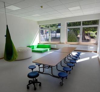 Der neue Multifunktionsraum bietet Platz für Essen, Ruhen und Projekte.