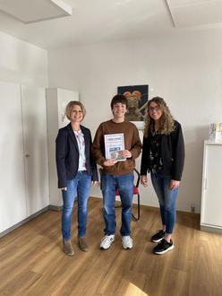v. l. Claudia Schneiders (Schulleiterin), Paul Schädlich und Katharina Breuer (Fachkonferenzleiterin Erdkunde)