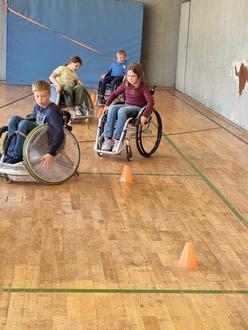 Besonders beeindruckend war für viele Schülerinnen und Schüler das praktische Erleben in der Turnhalle und den Außenbereichen der Schule: Wie man sich im Rollstuhl fortbewegt, Hindernisse überwindet oder in ein speziell umgebautes Auto ein- und aussteigt. Dabei wurden nicht nur Geschicklichkeit im Umgang mit dem Rollstuhl geschult, sondern auch das Bewusstsein für Inklusion und Barrierefreiheit gestärkt. Ebenfalls wurde das Bewältigen von Hindernissen und Steigungen auf Wegen geübt. Wheelies und viel Spaß beim Ausprobieren der Rollstühle kamen ebenfalls nicht zu kurz.