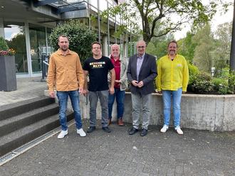 Die erfolgreichen Absolventen Christian Benner und Daniel Zalfen, Werkleiter Harald Brück, Erster Beigeordneter Bernhard Jüngling und Christian Diederichs, stellvertretender Personalratsvorsitzender der VG Gerolstein (v.l.)