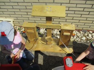 Die Kinder der Kita Sonnenschein Üxheim freuen sich über eine Tankstelle für die Fahrzeuge, einen neuen CD Player für die Turnhalle und einen Nacht Licht Projektor für die Ruhephase.