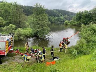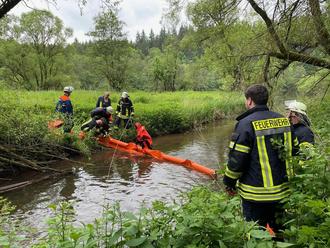 Die Feuerwehr Kronenburg brachte am Einlauf in den Kronenburger See die neue Ölsperre zum Einsatz.