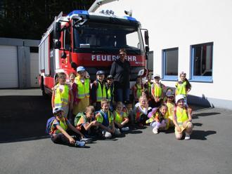In der Brandschutzerziehung erarbeiteten wir verschiedene Themen in Bezug auf Brandschutz und die Gefahren des offenen Feuers oder brennenden Kerzen. Außerdem lernten die Kinder spielerisch den Beruf der Feuerwehr kennen. Sie durften eine Uniform anprobieren und wir haben ein Experiment zum Thema Feuer durchgeführt. Zum Abschluss der Brandschutzerziehung besuchten wir die Freiwillige Feuerwehr in Gerolstein, wo wir schon von Frau Klaes erwartet wurden. Sie zeigte uns alle Räumlichkeiten und stellte uns viele wichtige Fragen. Natürlich durften wir im Anschluss das große Feuerwehrauto besichtigen. Vielen Dank für den großartigen Vormittag.