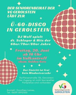 Die nächste Seniorendisco ist am Freitag, 20. Juni 2025 ab 18:00 Uhr im „Vulkantreff“ (ehem. „Golden Gate“). Der Eintritt ist frei. Der Zugang ist nicht barrierefrei. Kontakt: Dorothea Lames, Tel. 06591 8192300.