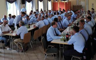 Besonders geehrt mit Urkunden des Landes und Ehrenabzeichen wurden Aktive der Wehren, die seit 15 und 25 Jahren ehrenamtlich als Retter im Einsatz sind. Im Rahmen der Wehrführertagung erfolgten Ernennungen, Entpflichtungen und Beförderungen. In einer Schweigeminute wurde den seit der letzten Tagung verstorbenen Kameraden gedacht. Der stellv. BKI Karl-Heinz Kunze, der stellv. Wehrleiter Marco Schneider und Wehrführer Dominik Schmitz bedankten sich bei den Feuerwehr-Kamerad:innen für viele geleistete ehrenamtliche Stunden zum Wohle der Bevölkerung.