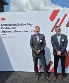DB-Vorstandsvorsitzender Dr. Richard Lutz: „Heute fahren erstmals seit der schrecklichen Flutkatastrophe vor vier Jahren wieder Züge zwischen Gerolstein und Köln. Das ist ein wichtiger Meilenstein auf diesem Weg und ein echter Grund zur Freude. Zusammen mit allen Beteiligten haben wir bereits viel geschafft und Gleise, Brücken, Bahnhöfe und Stellwerkstechnik wiederhergestellt oder komplett erneuert. Das gibt uns Rückenwind für das, was nun noch vor uns liegt. Wir wissen, dass sich die Menschen hier vor Ort sehnlich wünschen, dass die Zeit des Ersatzverkehrs ein Ende hat. Wir setzen daher alles daran, mit den noch ausstehenden Arbeiten für die Elektrifizierung so schnell es geht fertig zu werden. Spätestens im Jahr 2028 profitieren die Eifel und die Region dauerhaft von einem umweltfreundlichen und attraktiven Bahnverkehr.“