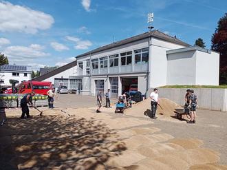 Die Hoffläche der Freiwilligen Feuerwehr Hillesheim ist fertig. „Unsere Mitglieder der Feuerwehr und der Altersabteilung haben in über 280 Stunden Eigenleistung in kürzester Zeit die Hoffläche komplett gepflastert und die Unkrautfolie im Hang verlegt“, freut sich Wehrführer Marco Schneider.