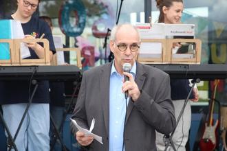 Alles war ausgerichtet auf ein großes Fest. Seit Monaten, Wochen wurde geplant und Absprachen mit Vereinen, Unternehmen, Künstlern und Eltern getroffen. Die Schüler und Lehrer hatten sich gemeinsam in unterschiedlichen Projekten auf diesen Tag vorbereitet. Nur das Wetter war unsicher. Aber auch der Wettergott hatte ein Einsehen und so startete pünktlich um 12:00 Uhr bei herrlichem Sonnenschein ein einzigartiges und tolles Schulfest.