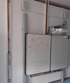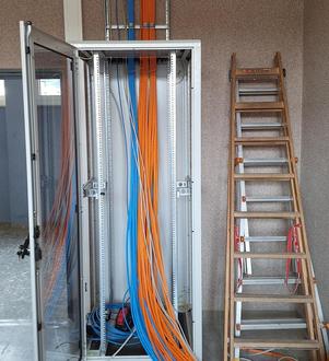 Und das ohne Kabelsalat: Die orangefarbenden Kabel sorgen für WLAN-Vernetzung und aktive Smartboards. Die blauen Kabel leiten die Notfall- und Gefahrenreaktionssysteme, damit zum Beispiel im Brandfall die Türen automatisch schließen und die Notfallknöpfe in den Klassenräumen funktionieren. Das neue Durchsagesystem läuft über die grauen Kabel. Das landesweite Projekt „DigitalPakt Schule“ wird an allen Schulen in VG-Trägerschaft umgesetzt.