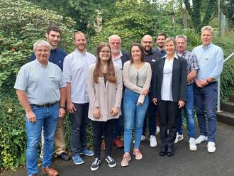 Personalratsvorsitzender Thomas Brost, Lukas Haas, Benedikt Mund, Elena Schmitz, Werkleiter Harald Brück, Leonie Post, Markus Pauly, Sachgebietsleiter Finanzen, Markus Dederichs, Sachgebietsleiter Personal, Carola Begon, Frank Reuter, Geschäftsführer Touristik Gerolsteiner Land GmbH und Bürgermeister Hans Peter Böffgen (v.l.)