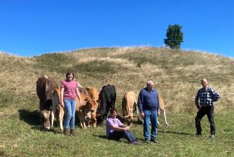 Nach Herrichten der Fläche, Stromversorgung und Zaunbau beweidet jetzt eine kleine Rinderherde aus Braunvieh, Jerseys und Schwarzbunten Rindern der Landwirtin Andrea Keller aus Steffeln wieder die mageren Hänge. Ortsbürgermeisterin Sonja Blameuser, Werner Schweisthal als Vertreter der Kirchengemeinde, die Eigentümerin der Fläche, und Projektleiter Gerd Ostermann sind froh, dass das Projekt nach langer Vorbereitungszeit jetzt endlich startet und auch längerfristig gesichert ist.