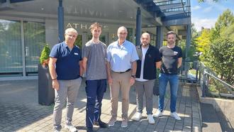 Personalratsvorsitzender Thomas Brost, Leon Kessler, Erster Beigeordnete Bernhard Jüngling, Sascha Happ und Thomas Schreiner, stellvertretender Werkleiter Technik der Verbandsgemeindewerke (v.l.)