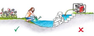 Das Fließgewässer dient dem Anlieger oftmals zum Gießen seines Anwesens. Ihr Tun und Handeln kommt dem Bach jedoch aus biologischer Sicht teuer zu stehen. Insbesondere kleinere Fließgewässer sind während einer längeren Trockenperiode von Austrocknung und damit von einem Absterben ihrer Wasserorganismen bedroht. In Niedrigwasserzeiten kann die Entnahme daher sogar eingeschränkt bzw. verboten werden.