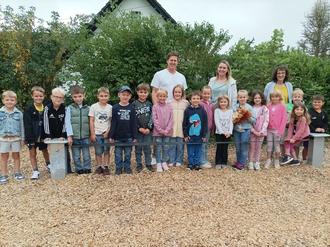 Zur Einweihung besuchte Frau Laura Romes vom Gerolsteiner Brunnen die Schule. Gemeinsam mit dem Schulleiter Herrn Mergen und der Klasse 1 samt ihrer Klassenlehrerin Frau Gillig-Arenz eröffnete sie voller Vorfreude die neue Schulhofattraktion. Im Anschluss drängten sich die Kinder um das neue Gerät, um den herausfordernden Balancierspaß auszuprobieren.