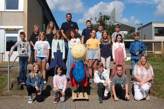 Es ist der 1. Schultag nach den Ferien. Erwartungsfroh schauen 51 neue Fünftklässler und ihre Eltern, Erziehungsberechtigte oder Großeltern in der Sporthalle umher. Neben Keyboards und einem Klavier, entdecken sie schnell den Super-August, das Maskottchen der Schule, der vielen schon bekannt ist. Aber sie entdecken noch etwas Seltsames - einen großen Schirm. Draußen scheint doch die Sonne? Also, wozu? – Bevor das Rätsel gelöst wurde, begrüßte die Keyboardklasse musikalisch unter Leitung von Herrn Merten die neuen Schüler und Gäste. Anschließend ergriff die Schulleiterin Frau Andrea Stabel das Wort und hieß alle herzlich willkommen. Dabei stellte sie auch noch einmal den Super-August vor und wünschte jedem Schüler ebenfalls die ein oder andere Superkraft. Auch die Vorsitzende des Fördervereins Frau Julia Zimmerling begrüßte herzlichst alle Anwesenden und lud die Eltern zum Elterncafé ein.