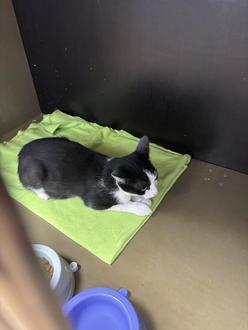 Das Muttertier ist weiß-schwarz gefleckt, wird auf über 11 Jahre geschätzt und ist weder gechipt noch kastriert.