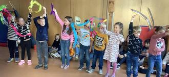 Hierzu haben die Kinder gemeinsam mit den Erzieher-/innen und unserer Ergotherapeutin Socken gebastelt, welche sie sich über die Hände zogen um dann damit zu tanzen.