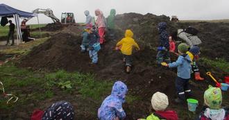 An der Ausgrabungsstätte angekommen, begrüßte uns der Archäologe Peter Henrich. Dort zeigte er uns ein 2000 Jahre altes Stück Holz einer Brücke, welches von den 17 Kindergartenkinder im Alter von 2-6 Jahren in die Hand genommen werden durfte. Somit waren wir eine der Letzten, die das alte Holzstück berühren durften, bevor es nun im Museum ausgestellt wird. Geschichte zum Anfassen. Die Kinder hörten Peter aufmerksam und interessiert zu. Gemeinsam haben wir alle noch viel Spannendes erfahren.