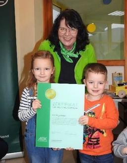 Nach erfolgreichem Abschluss vom AOK-Gesundheitsprogramm „JolinchenKids“ wurde die Kita Regenbogen in Neroth mit dem goldenen Zertifikat „Gesunde Kindertagesstätte“ ausgezeichnet.