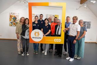 Berthold Nick (evm) übergibt den Spendenbetrag zusammen mit Bürgermeister Hans Peter Böffgen an die begünstigten Vereine.