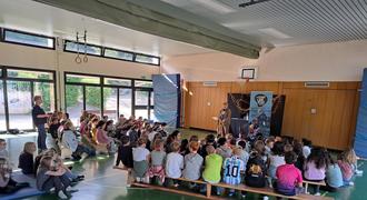 Am 17. und 18. September 2024 fanden für die Schülerinnen und Schüler der Grundschule an der Waldstraße und für die Primar- und Orientierungsstufe des Hubertus-Rader-Förderzentrum in Gerolstein vier gemeinsame, musikalische Lesungen von Sascha Gutzeit statt. Der Autor begeisterte mit seinen spannenden Detektivgeschichten und den interaktiven Liedern alle Zuhörerinnen und Zuhörer.