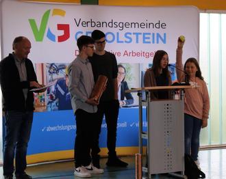 Die beiden Schulsprecher Leonard Finken und David Hamecher hatten gemeinsam mit allen Schulklassen eine Zeitkapsel mit Bildern, Sportgeräten aus dem Bestand der alten Turnhalle, Berichten über den Schulalltag, Hobbies und Rezepten im Jahre 2022, Blütensamen, USB-Sticks mit angesagten Musiksongs, Mindmaps über Einwohnerzahlen und Fächerbeschreibungen vorbereitet.