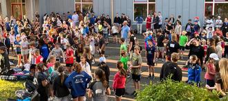 Zum Kennenlernen der Streckenabschnitte wurde die erste Runde gemeinsam im Klassenverband absolviert, anschließend liefen oder wanderten alle Teilnehmer:innen in ihrem individuellen Tempo. Dabei unterstützten und motivierten sie sich klassen- und jahrgangsübergreifend. Am Ende des Vormittags versammelten sich alle erschöpft, aber gut gelaunt auf dem Schulhof und warteten gespannt auf die Verkündung des Gesamtergebnisses: Beeindruckende 7.246 km waren innerhalb von 2,5 Stunden zurückgelegt worden! Frau Schneiders dankte abschließend allen Schülerinnen und Schülern sowie Lehrkräften für ihren sportlichen Einsatz an diesem besonderen Schultag, an dem eine Spendensumme im fünfstelligen Bereich erzielt wurde, die der ganzen Schulgemeinschaft zugutekommt.