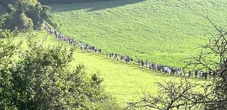 Nach einem gemeinsamen Warm-up zu animierender Musik, angeleitet von Herrn Weber, wanderten alle Schülerinnen und Schüler mit ihren Klassen- und Stammkursleitungen zum Startpunkt an der Papenkaule.