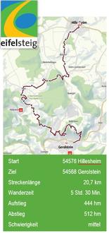 Mehr zu den Eifelsteig-Etappen in der Ferienregion Gerolsteiner Land bietet die neue, detaillierte Eifelsteig-Broschüre. Sie begleitet Wanderfreunde entlang der Etappen 8 bis 10 und bietet hilfreiche Tipps und Tricks zur Planung der entsprechenden Wanderrouten. Die Broschüre ist für 1,00 € in den Tourist-Informationen Gerolstein, Hillesheim und Stadtkyll erhältlich.