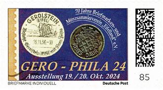Die Sammlerfreunde Eifel, Gerolstein e.V. feiern in diesem Jahr ihr 70-jähriges Bestehen. Aus diesem Anlass veranstalten sie am Samstag, 19. Oktober von 11:00 bis 17:00 Uhr und Sonntag, 20. Oktober 2024 von 10:00 bis 17:00 Uhr in der Stadthalle Rondell in Gerolstein eine Ausstellung, die „GERO-PHILA 24“.