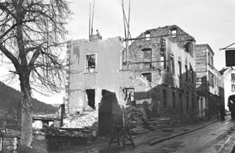 1951: Wiederaufbau, hier Hauptstraße oberhalb Dresstreppchen