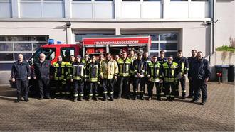 Teilnehmer mit ihren Ausbildern Wolfgang Rechs und David Schleder, stellv. BKI Markus Keppler und Sascha Löbens, Wehrleiter der VG Gerolstein.
